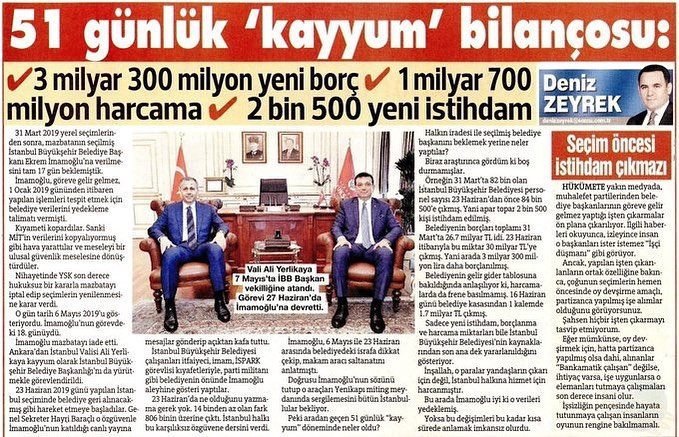 Mazbatası alındıktan sonraki 51 günde; 3 milyar 300 milyon yeni borç, 1 milyar 700 milyon harcama, 2.500 yeni istihdam!..